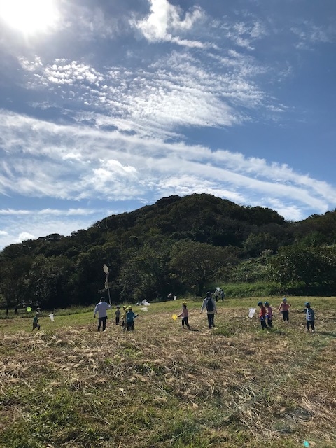 年長組が秋探しに出かけました。昆虫に詳しい卒園生の保護者様にもご協力いただき、珍しい蝶や幼虫の解説をしていただいたり、実際に虫を捕まえたり、秋を存分に感じた1日でした。 -