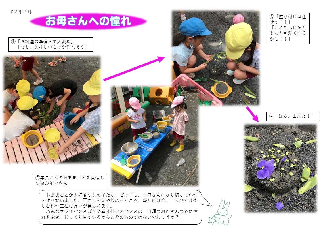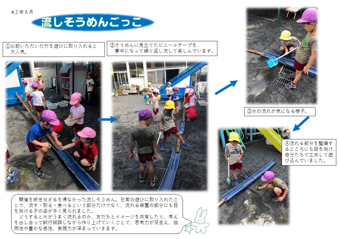 年中組では、雲梯や登り棒、鉄棒などに友だちを誘って挑戦する子の姿が多く見られています。