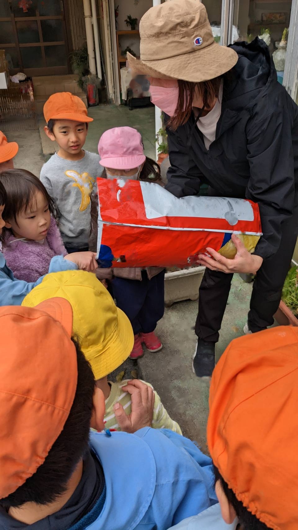 豆まきした後の豆は、絶対食べない約束のもと、戸外自由遊びでままごとに再利用。
