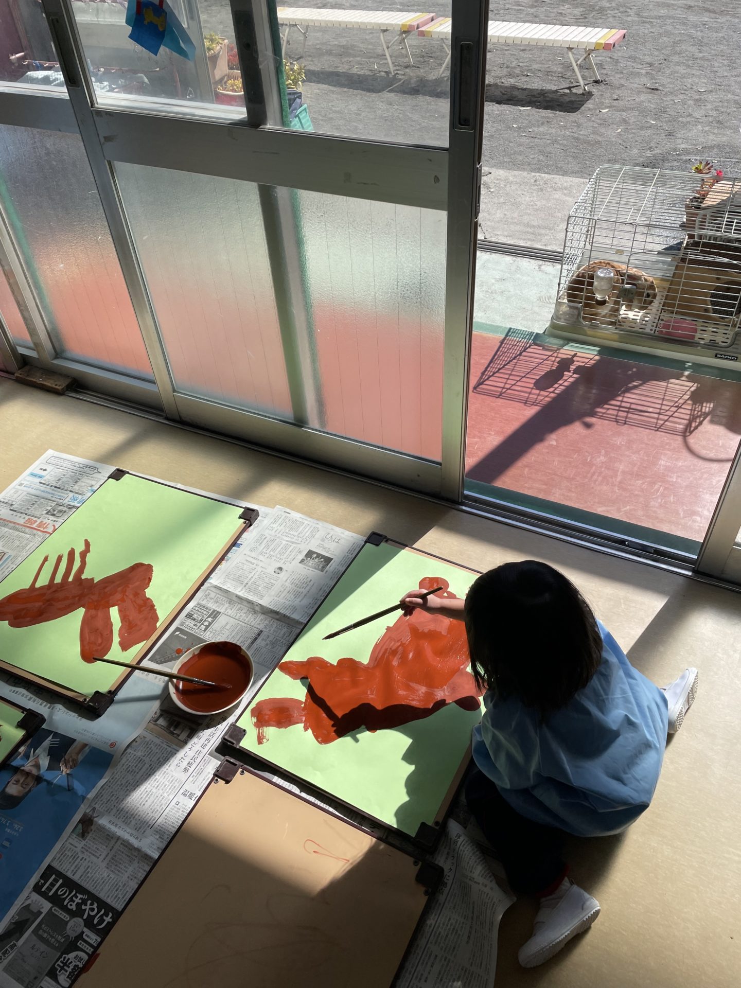 園にある鯉のぼりとは違った模様や大きさにビックリする子どもたち👀☝